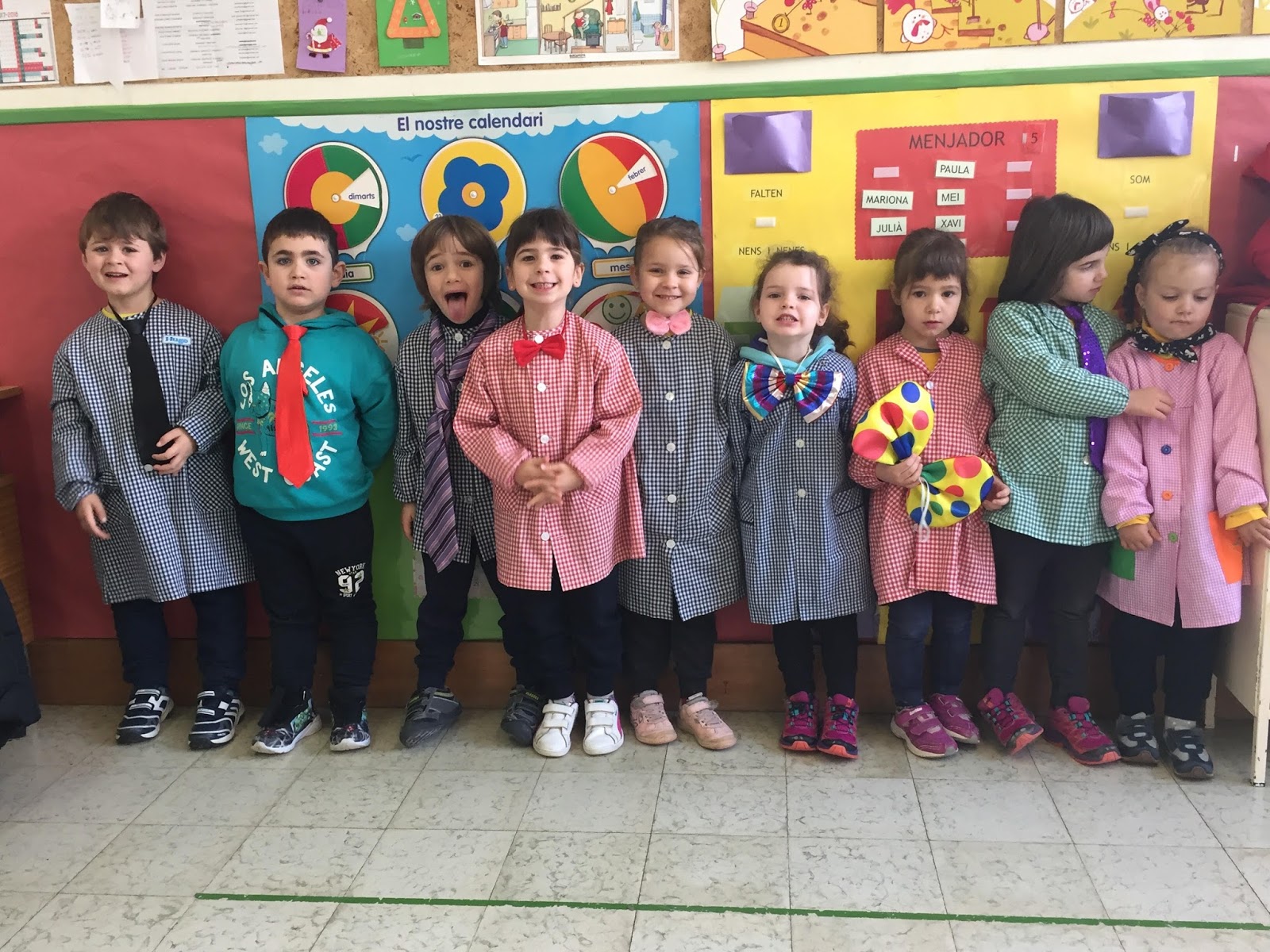 Ahir dimarts tots els nens i nenes de l'escola vem venir amb una bata blanca de metges. I avui hem arribat molt mudats: tots i totes amb un llaçet o una corbata al coll. De mica en mica anem completant la nostra disfressa de "Curapupes"!!!